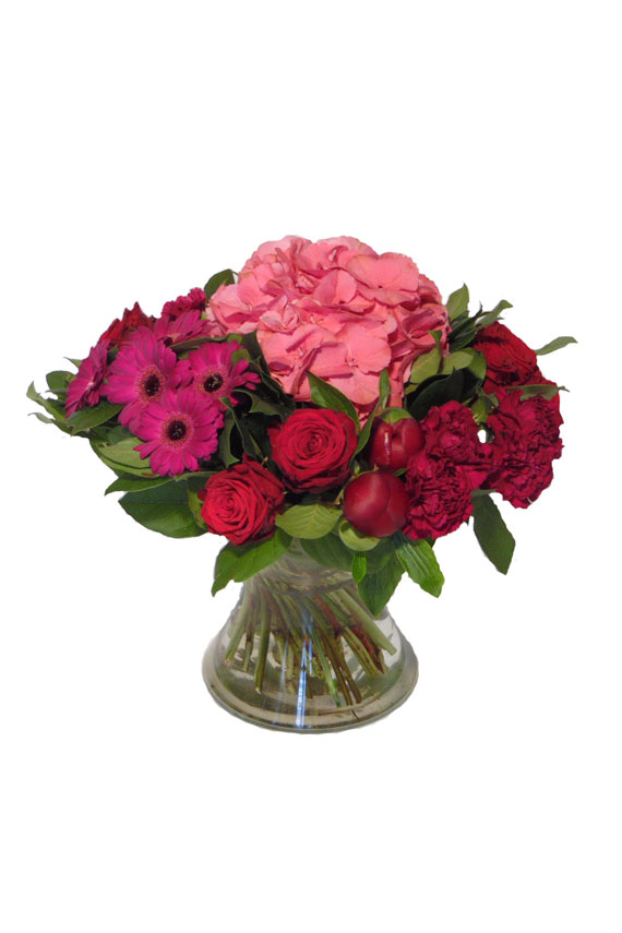 Hortensia met pioenen, een mooi warm boeket bloemen!