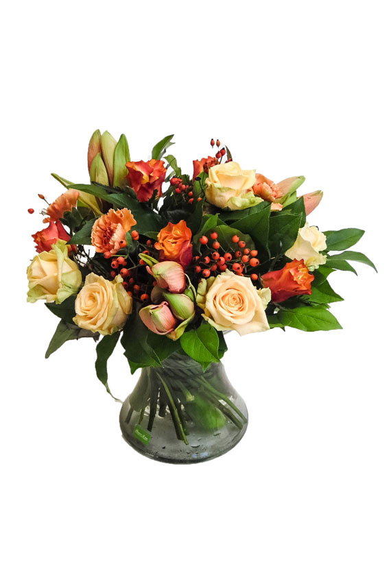 Onze floriste stelt zelf uw boeket samen. Dank zij haar keuze kan u een mooi vers seizoensgebonden boeket verwachten.